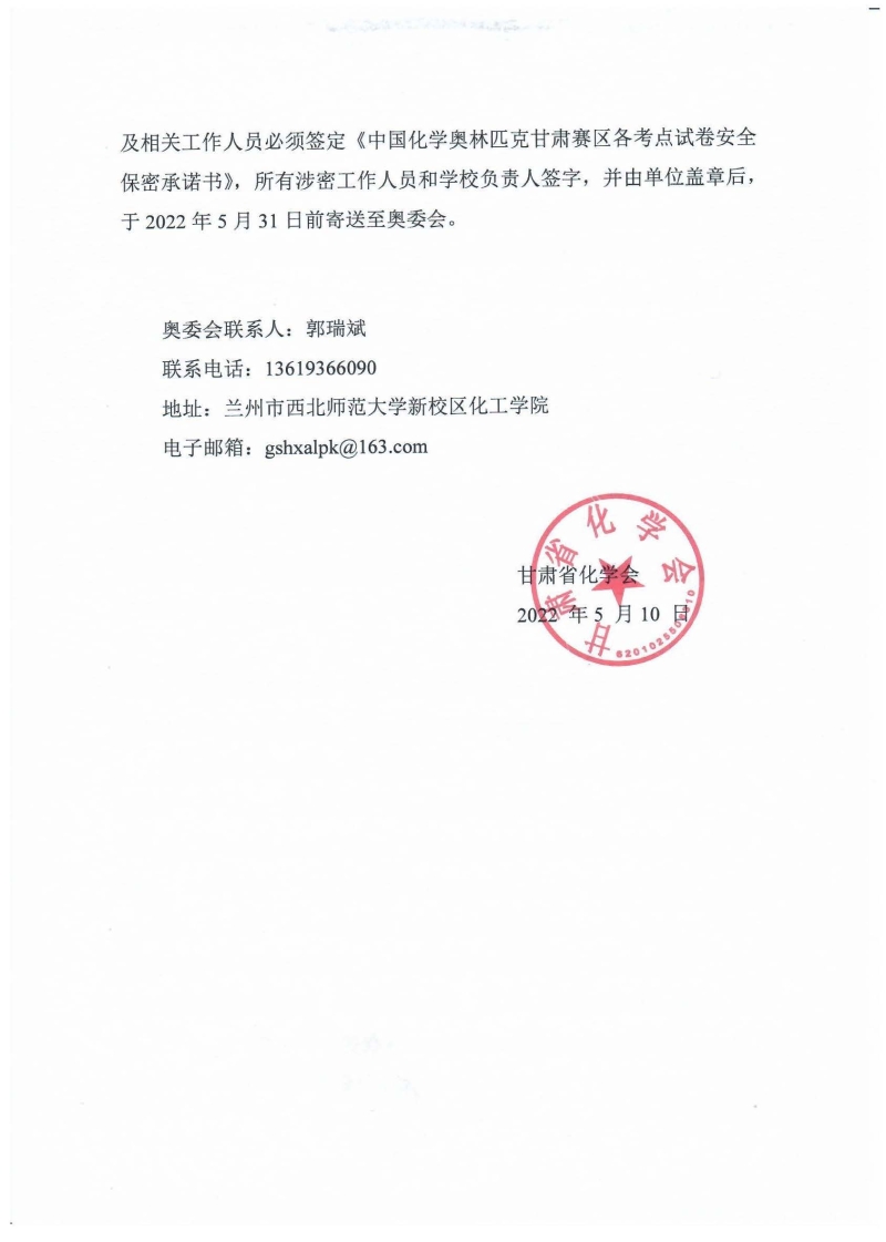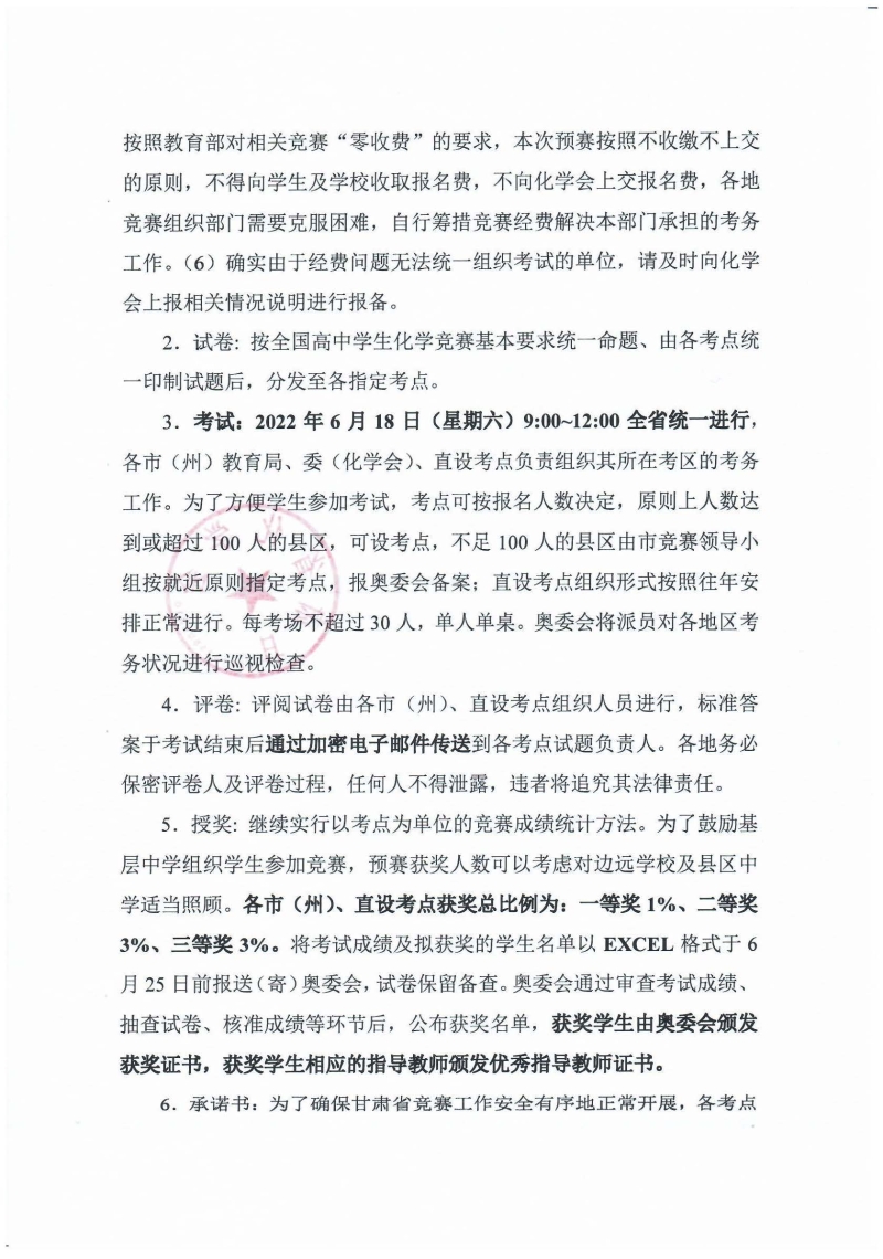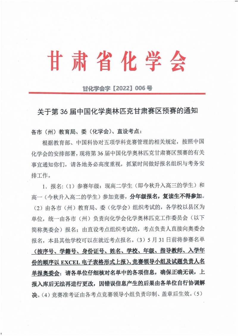 关于第36届中国化学奥林匹克甘肃赛区预赛的通知