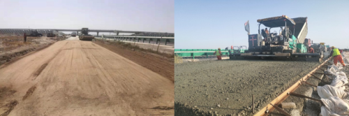 图2 盐渍土改良剂示范应用路段铺设现场
