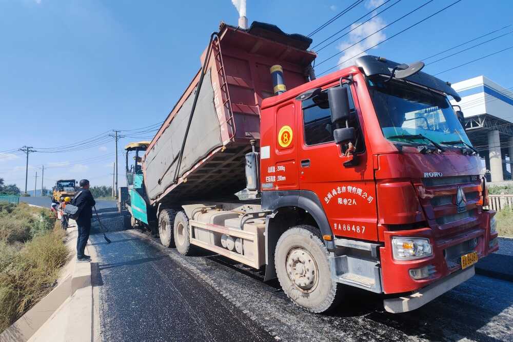 2024年9月21日,利用新技术研发的退役风机叶片改性沥青混合料在路面上得到铺筑和示范。受访者供图