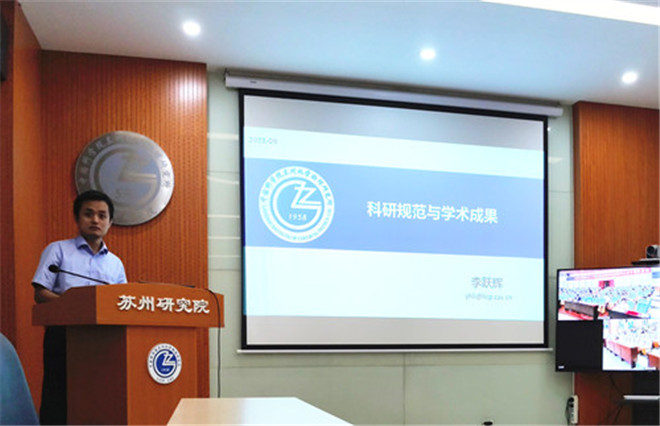 张长春作为了题为“扣好科研人生第一粒扣子”的廉洁从业专题报告,从党史学习教育与科技创新要求出发,全面分析讲述了当前反腐倡廉工作的形势与任务,通报了科教领域的违纪违规和科研诚信典型案例,对青年职工和研究生提出了增强规矩意识,加强廉洁自律的具体要求。李跃辉研究员围绕自己在国内外就读和从事科研工作的实践,详细讲述了如何规范开展学术研究,并着重介绍了做好实验原始记录的重要性。