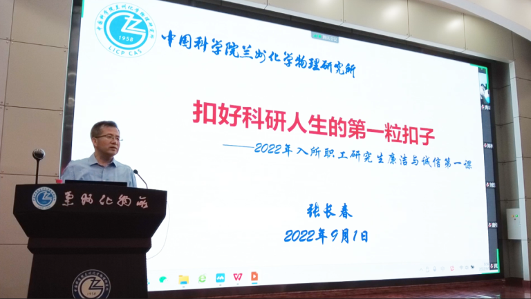 9月1日,中国科学院兰州化学物理研究所为2022年新入所人员讲授“廉洁与诚信第一课”,2022年新入所职工和研究生160余人参加了会议。