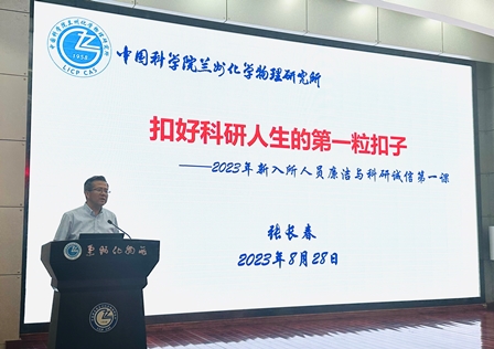 8月28日,中国科学院兰州化学物理研究所为2023年新入所人员讲授“廉洁与科研诚信”第一课,2023年新入所职工和研究生150余人参加会议。