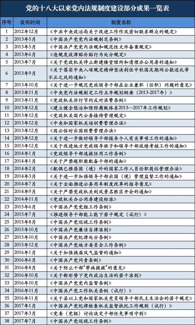 凡是过去,皆为序章。2017年6月,中共中央印发《关于加强党内法规制度建设的意见》,明确提出到建党100周年时,形成比较完善的党内法规制度体系、高效的党内法规制度实施体系、有力的党内法规制度建设保障体系。新的远见开始凝聚,新的征程已经开启。