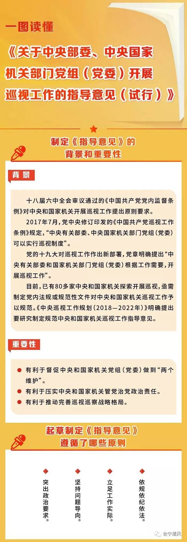 一图读懂《关于中央部委、中央国家机关部门党组(党委)开展巡视工作的指导意见(试行)》