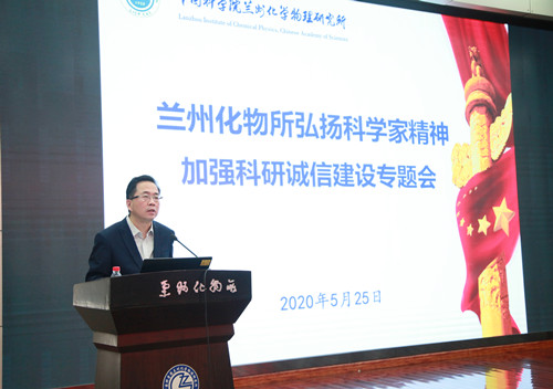 5月25日,中国科学院兰州化学物理研究所组织召开“弘扬科学家精神 加强科研诚信建设”专题报告会,全所科研与管理人员、研究生等300余人参加了会议,会议由所长、党委书记王齐华主持。
