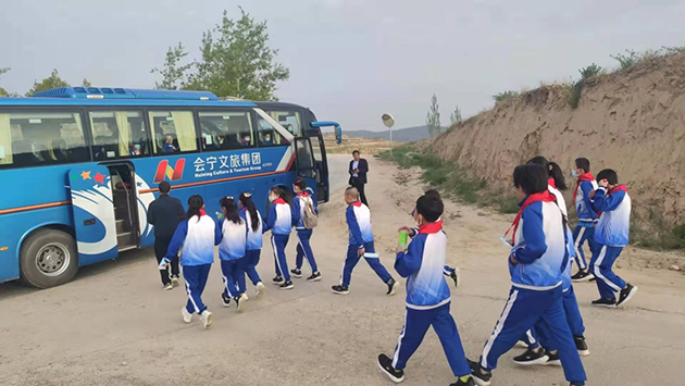 王马山村中小学师生22日早6时半就从村里出发,于蒙蒙细雨中驱车160公里赶赴兰州,至上午10时到达兰州化物所,研究所安排了包括科普报告、实验室参观、科学小实验、化学互动游戏等一系列活动。