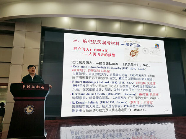 兰州化物所所长、党委书记王齐华主持科普报告会并介绍研究所公众科学日开展情况