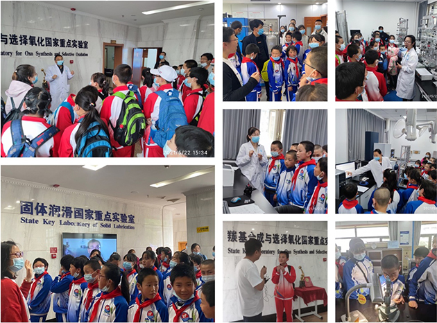 兰州化物所所长、党委书记王齐华主持科普报告会,他代表全所干部职工对王马山村中小学师生们的到来表示热烈欢迎,并介绍了此次活动的背景等情况。中科院院士、兰州化物所学术委员会副主任委员刘维民研究员为师生们作了题为“高性能润滑材料技术助力现代化强国建设”的报告,介绍了润滑剂的作用、润滑油脂研究的重要性、航空航天润滑材料、高端装备润滑油脂、轨道交通润滑材料以及润滑科技工作者的使命,并勉励王马山村中小学的孩子们克服困难、勤奋努力,将来成为德才兼备,忠诚于国家、民族和人民的优秀人才。师生们还聆听了研究所高级工程师宗莉题为“神奇的石头——认识世界、利用资源”的报告,并参观了羰基合成与选择氧化国家重点实验室、固体润滑国家重点实验室。