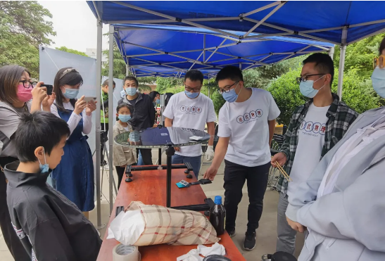 有不少中小学生还站在了近代物理所准备的“小小科学家报告会”背景板前,将当天在“科学日”上学到的新知识讲给大家听。同时,只要说出5个近代物理所合成的新核素,或者不同元素在生活中的应用的小朋友,就可以获得近代物理所自制的一份礼物。