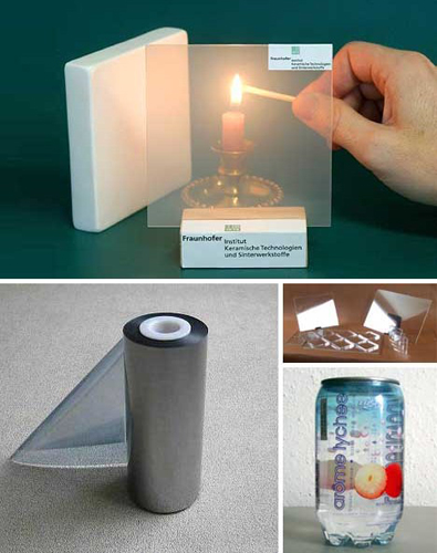 透明材料 喝过装在透明罐子里的可乐吗?用过透明的锡箔纸包炖熟的肉吗?对于这两个问题,很多人一定会给出否定的答案。当前每平方英寸(约合645.16平方毫米)透明铝片的价格为10美元,如果价格下降,透明铝的使用将变得更为普遍,程度上将超乎我们想象。氧化铝是红宝石和蓝宝石的主要成分,工程师已经发现将这些宝石的硬度和半透明特性融入一种材料的方式。合而为一后形成的材料不但重量轻,同时也拥有与金属铝一样的柔软性。