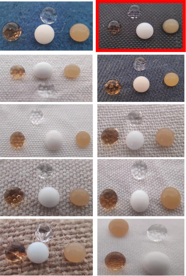 将疏水分子修饰到织物表面,可达到超疏水、不沾污效果;织物手感、颜色不受影响