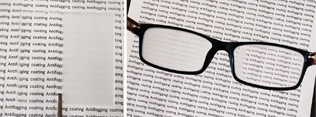 左图:有机玻璃板一半涂有防雾涂层,一半未涂防雾涂层起雾对比 右图:眼镜一侧涂有防雾涂层,另一侧未涂防雾涂层起雾对比