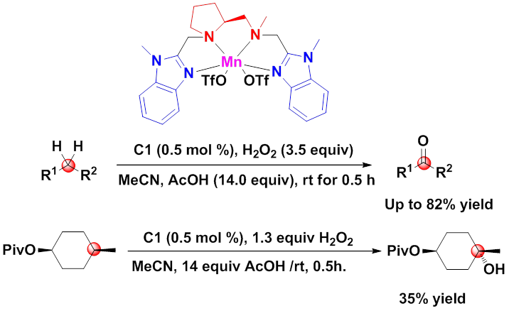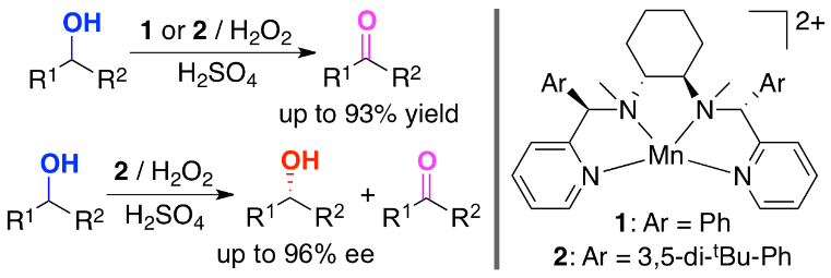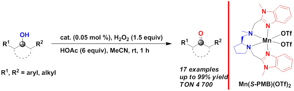 2. Duyi Shen, Chengxia Miao, Daqian Xu, Chungu Xia, Wei Sun* , Highly Efficient Oxidation of Secondary Alcohols to Ketones Catalyzed by Manganese Complexes of N-4 Ligands with H2O2, Org. Lett., 2015, 17, 54-57.