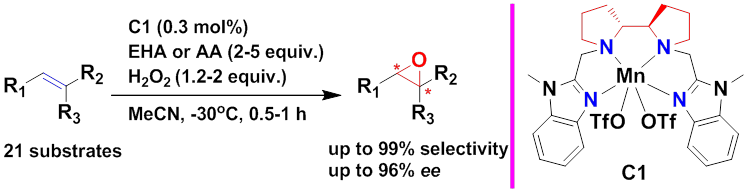 2. Chengxia Miao, Xingbin Yan, Daqian Xu, Chungu Xia, Wei Sun*, Bioinspired Manganese Complexes and Graphene Oxide Synergistically Catalyzed Asymmetric Epoxidation of Olefins with Aqueous Hydrogen Peroxide, Adv. Synth. Catal., 2017, 359, 476 – 484.