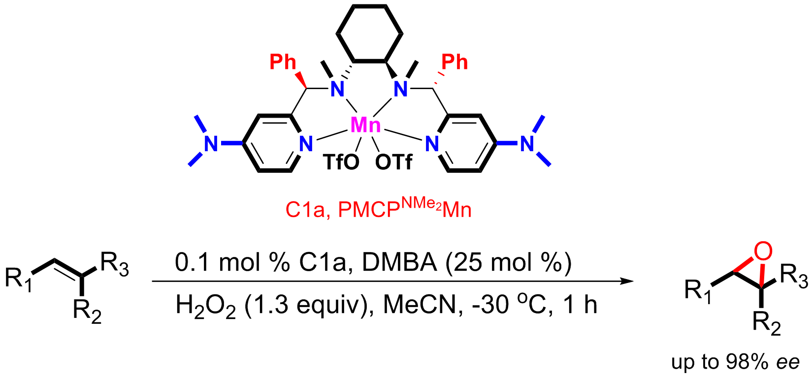 3.Duyi Shen, Chengxia Miao, Shoufeng Wang, Chungu Xia; Wei Sun*. A Mononuclear Manganese Complex of a Tetradentate Nitrogen Ligand – Synthesis, Characterizations, and Application in the Asymmetric Epoxidation of Olefins. Eur. J. Inorg. Chem., 2014, 33, 5777-5782.