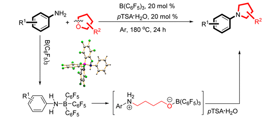 8.Zhenbei Zhang, Chengxia Miao, Chungu Xia, and Wei Sun*, Synergistic Acid-Catalyzed Synthesis of N-Aryl-Substituted Azacycles from Anilines and Cyclic Ethers, Org. Lett., 2016, 18 (7), pp 1522–1525.