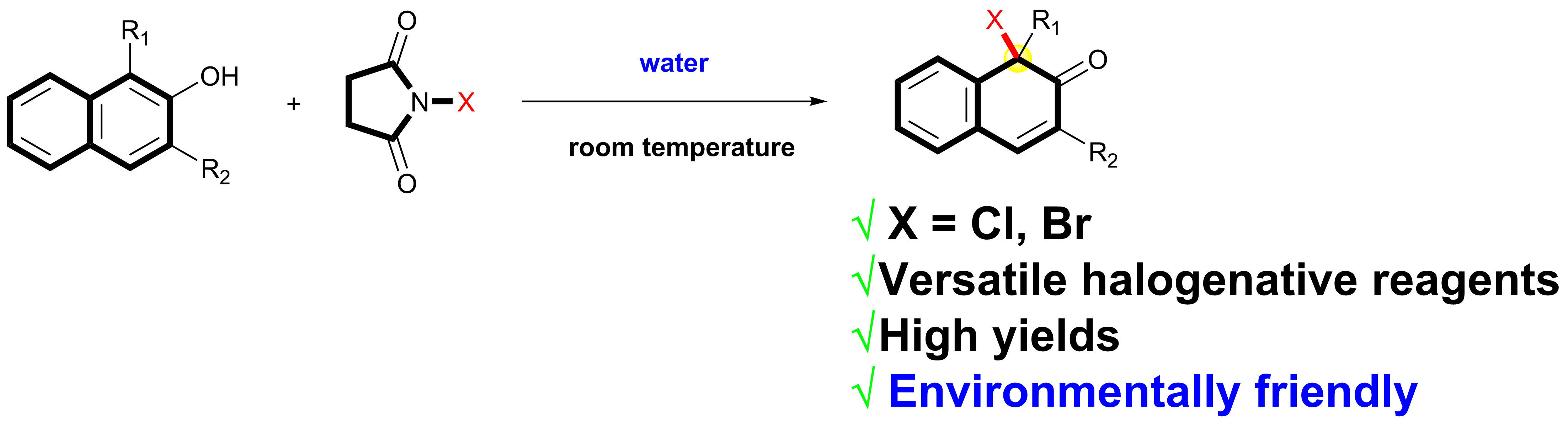 3. Zhenbei Zhang, Qiangsheng Sun, Daqian Xu, Chunggu Xia, Wei Sun*, Directly Halogenative Dearomatization of 2-Naphthols by NXS (X = Cl, Br) in water, Green Chem., 2016, 18, 5485–5492.