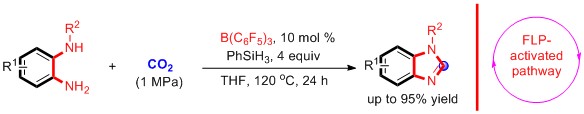 2.Zhenbei Zhang, Qiangsheng Sun, Chungu Xia, and Wei Sun*, CO2 as a C1 Source: B(C6F5)3-Catalyzed Cyclization of o-Phenylene-diamines to Construct Benzimidazoles in the Presence of Hydrosilane. Org. Lett., 2016, 2016, 18, 6316-6319.