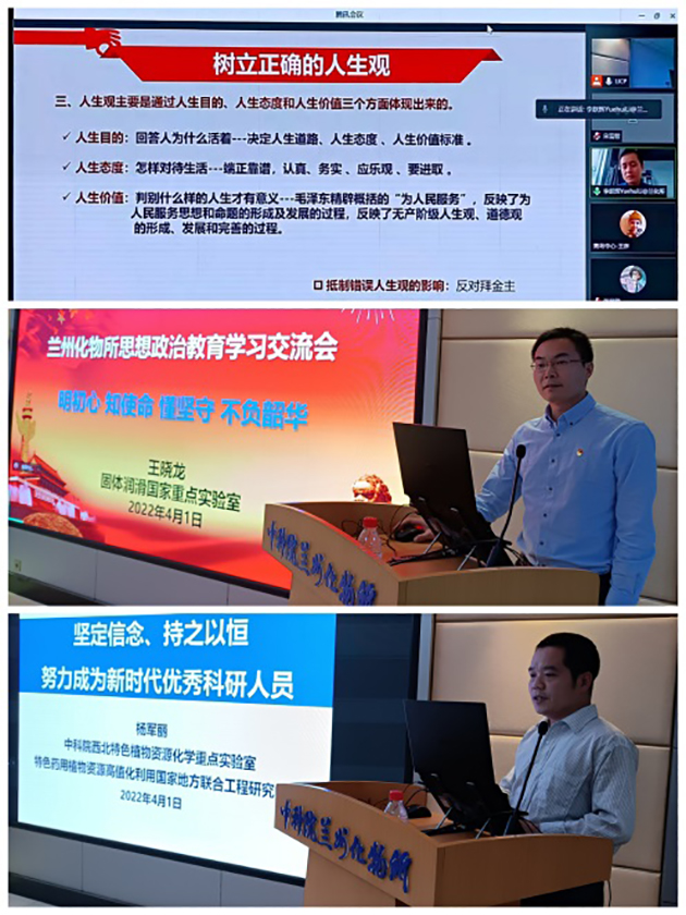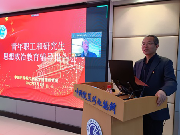 为深入贯彻落实习近平新时代中国特色社会主义思想和党的教育方针,进一步加强青年职工和研究生思想政治工作,4月1日,中国科学院兰州化学物理研究所举办了青年职工和研究生思想政治教育线上辅导报告会,青年职工和研究生260余人参加报告会。副所长张俊彦出席报告会并讲话。人事教育处、党委办公室负责人参加会议。
