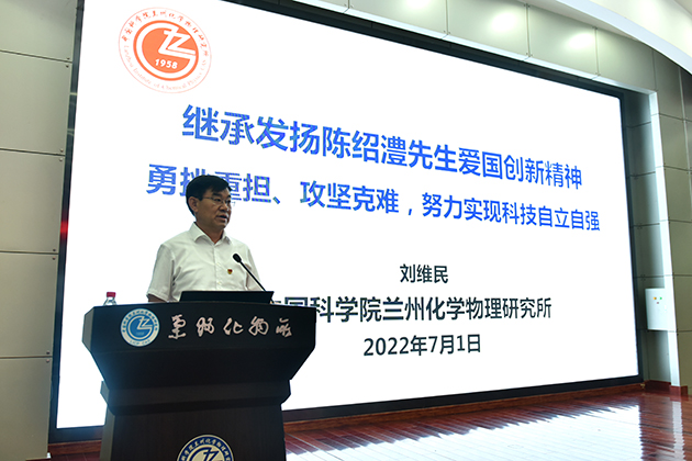 研究所党委委员、学术委员会副主任委员、中科院院士刘维民研究员作了题为“继承发扬陈绍澧爱国创新精神 勇挑重担、攻坚克难,努力实现科技自立志强”的报告,回顾了陈绍澧先生短暂绚烂的科研人生,介绍了陈绍澧先生身上集中体现的热爱国家、急国家之所急的爱国精神,勇攀高峰、敢为人先的创新精神,追求真理、严谨治学的求实精神,甘为人梯,不遗余力提携后进的育人精神。