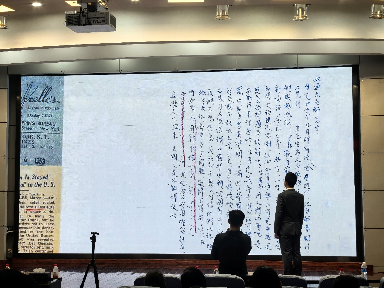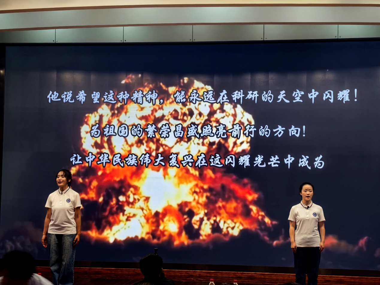 宣讲会邀请了中国科学院大学“两弹一星”精神宣讲团作了“青年挺膺担•厚植家国情怀”的专题宣讲,以“讲述信仰故事、演绎时代精神、传承文化使命”为主线,通过宣讲、演绎、短剧等不同形式表演了《启航》《执着》《家书》《追梦者・逐梦者》《做祖国的 “链条”》等节目,讲述5位元勋矢志报国的动人故事,带领现场师生沉浸式聆听了老一辈科学家的动人故事,回望了那段艰苦卓绝却又激情燃烧的岁月,体味了老一辈科学家热爱祖国、无私奉献的家国情怀。