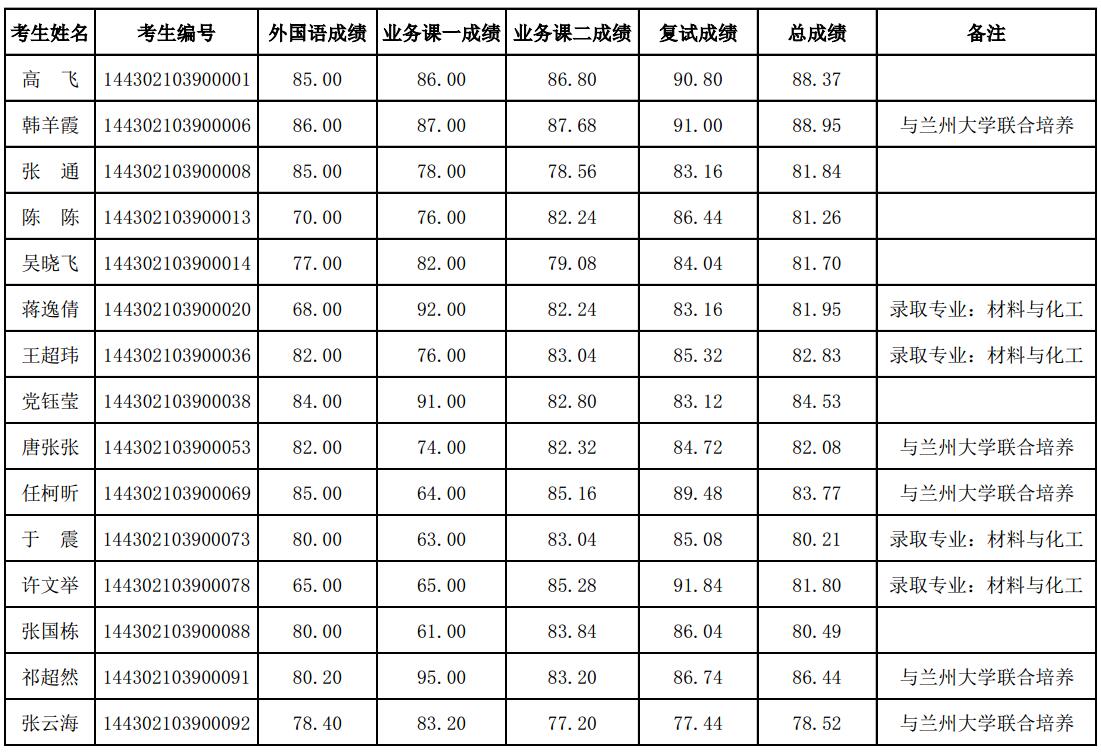 中科院兰州化物所拟录取2022年秋季入学博士研究生名单公示
