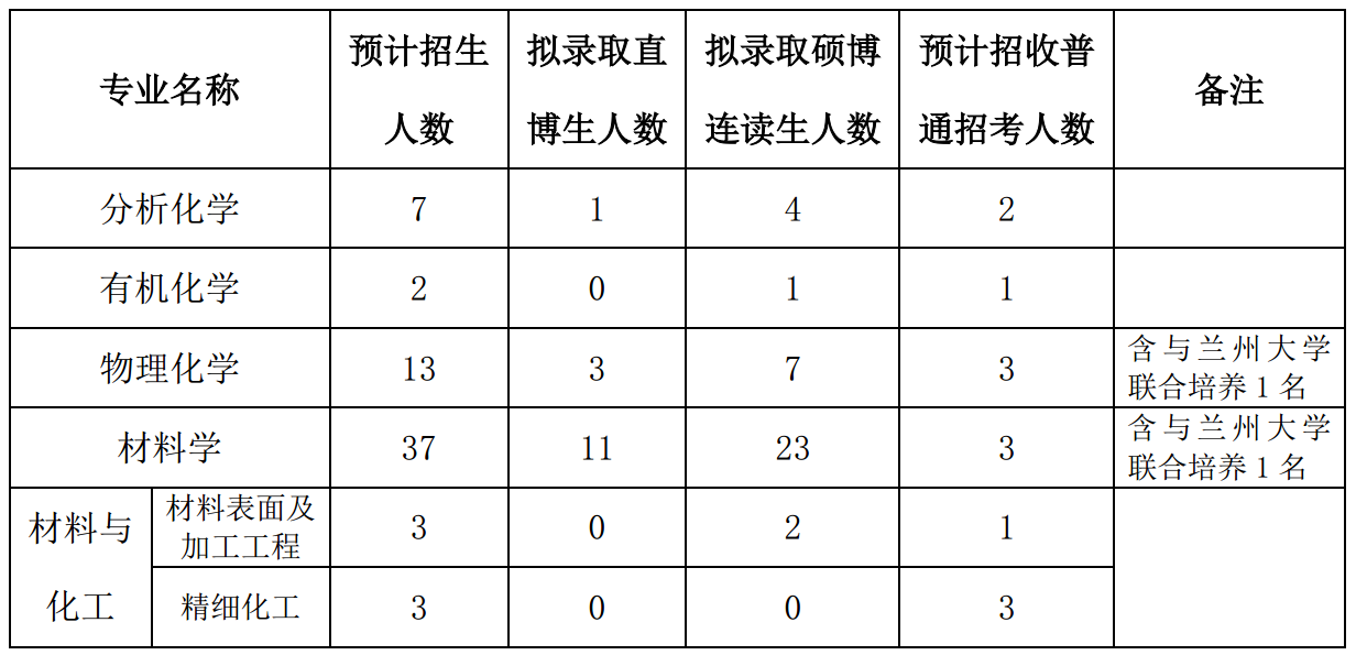 中国科学院兰州化物所关于公布2024年秋季普通招考博士研究生预计招生人数的公告
