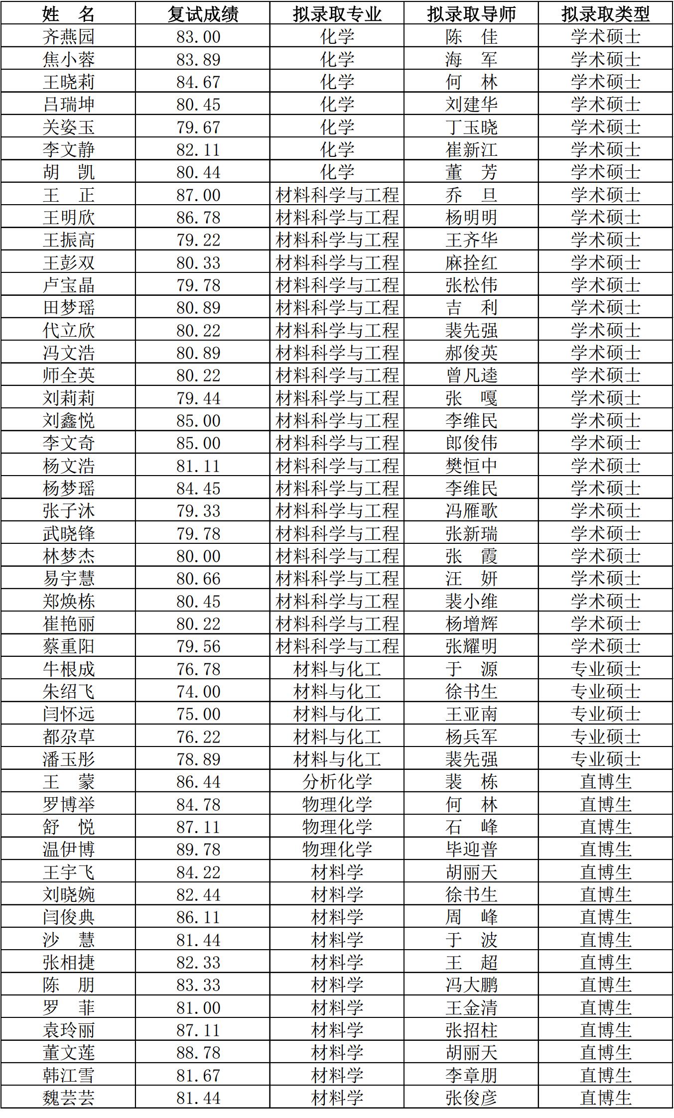 中国科学院兰州化物所拟录取2024级推荐免试研究生名单公示
