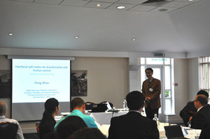 兰州化物所固体润滑国家重点实验室主任、中国科学院院士刘维民研究员担任会议中方主席,英国南安普顿大学Robert J K Wood教授担任英方主席。会上,刘维民院士致开幕辞,他希望通过本次研讨会,为中英各国摩擦学研究领域的专家和学者架起一座沟通的桥梁,增进摩擦学同行之间的合作与联系。随后,与会代表就纳米材料摩擦学领域的焦点问题和目前面临的挑战,从Biomimetics、Lubrication、Textured surface、Tribofilms、Modelling5个主题展开了讨论。刘维民院士、固体润滑国家重点实验室副主任阎逢元研究员、副主任周峰研究员、先进润滑与防护材料研发中心副主任翁立军研究员以及蒲吉斌副研究员分别作了题为“Nano-particular lubricants”、“Interfacial soft matter for friction control and antibiofouling”、“The sliding tribocorrosion phenomena of some ceramics and metals in seawater”、“Recent Advances in WS2 Films: for Space Application”、“Tribological mechanisms of graphene-based composite films”的会议特邀报告。