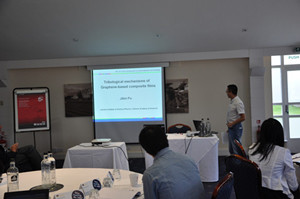 蒲吉斌副研究员作题为“Tribological mechanisms of graphene-based composite films”会议特邀报告 |