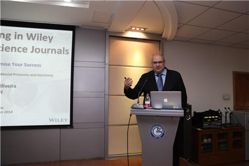 报告中,José Oliveira博士首先介绍了WILEY-VCH出版社在材料科学领域三个有影响的期刊,Advanced Materials, Advanced Functional Materials和Small,分别从三个期刊近几年在该领域的发展状况、发展趋势、三者的联系与区别以及中国科研人员近年在上述期刊中发表文章的良好态势展开了详细的介绍,向大家展示了详实科学统计数据。然后,José Oliveira博士从期刊编委、审稿人以及投稿人的角度分别介绍了上述期刊的编辑审稿流程,就稿件评价中Cover letter、Conclusion section of manuscript、Key words、Literature references、Abstract等方面主次作用和准备技巧方面为大家做了详细介绍,并针对大家关心的如何更快更成功地在上述期刊上发表高质量文章的问题,给出了有价值的建议。最后,在座师生就自己所关心的在文章准备和投稿过程中遇到的问题进行了提问,José Oliveira博士对此一一为大家进行了解答。