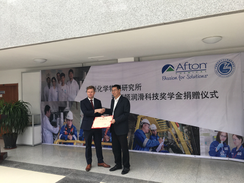 雅富顿是一家世界领先的石油添加剂公司,开发和生产各种燃油和润滑油添加剂,从而提高其在机械、车辆及其它设备中的使用性能。雅富顿承诺自2016年9月起的5年内每年将向兰州化物所提供5个奖学金名额,奖学金授予人选将从兰州化物所相关专业攻读硕士或博士学位的学生中提名选出。