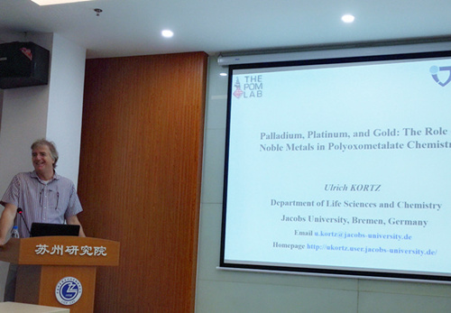 8月14日,德国不来梅雅各布大学 Prof. Dr. Ulrich Kortz受邀到中国科学院兰州化学物理研究所苏州研究院访问交流,并作了题为“Palladium, Platinum, and Gold: The Role of Noble Metals in Polyoxometalate Chemistry”的学术报告。