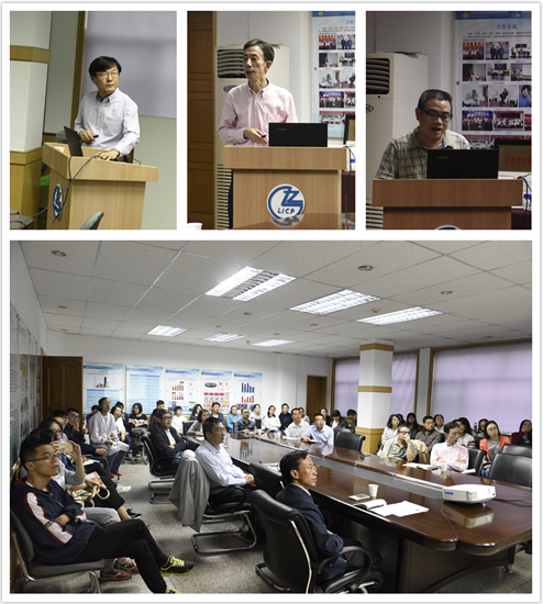 Won Keun Oh副教授作报告(左上) 、魏孝义研究员作报告(中上)、