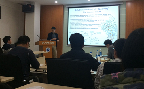 3月31号至4月2号,美国波士顿学院Shih Yuan Liu教授应羰基合成与选择氧化国家重点实验室邀请,到中国科学院兰州化学物理研究所苏州研究院进行学术交流,并于4月2日做了题为“Translating New Chemical Space to New Function: The Case of BN/CC Isosterism”的学术报告。