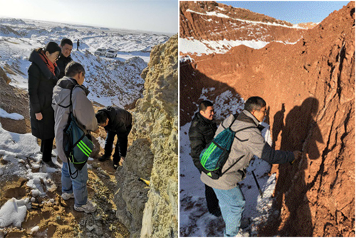 甘肃省黏土矿物应用研究重点实验室主任王爱勤研究员陪同邓友军教授实地考察了甘肃临泽凹凸棒石矿区,并进行了采样工作。在前期各自研究的基础上,双方在凹凸棒石去除霉毒素机理研究方面达成了合作共识。