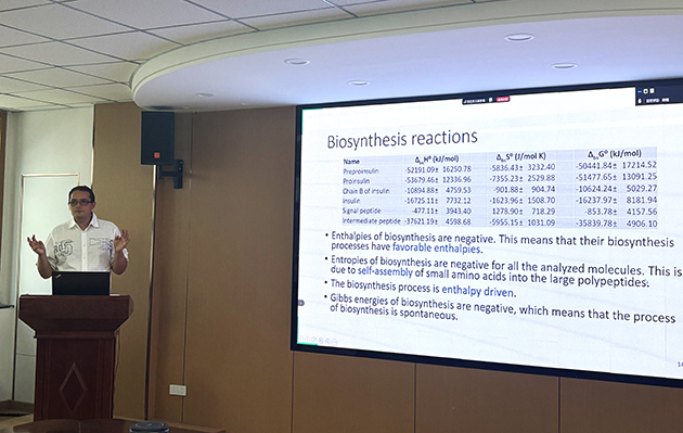 7月3日,塞尔维亚贝尔格莱德大学化学、技术和冶金研究所(ICTM)Marko Popović研究员应邀访问中国科学院兰州化学物理研究所,并作了题为“Chemical thermodynamics of biomolecules: Biothermodynamic analysis of biological synthesis of insulin and hemoglobin”的学术报告。