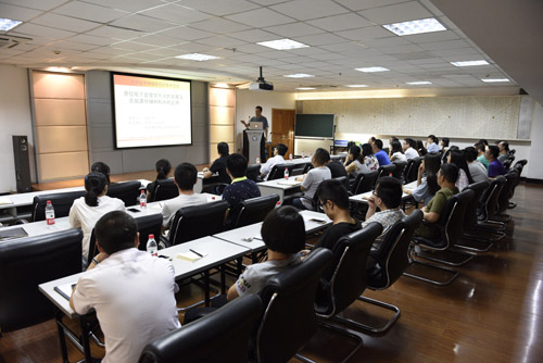 报告中,张跃飞研究员首先介绍了北京工业大学固体微结构与性能研究所的组织结构与实验平台建设情况,然后介绍了他们课题组利用原位电镜技术,在电子显微镜中构建纳米电池体系,进行原位充放电实验,直接观察和研究电极材料的充放电机制、结构演变和电子离子导电率的变化以及电化学-力学行为变化的最新研究结果。报告结束后,在座师生就自己所关心的科学与技术问题与张跃飞研究员进行了交流与讨论。