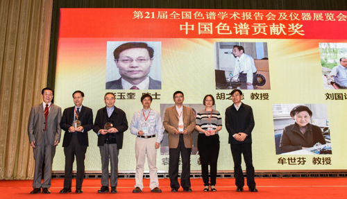 会上宣布了“中国色谱贡献奖”获奖名单,大连化物所张玉奎院士、兰州大学胡之德教授、中科院化学研究所刘国诠研究员、中国色谱学会副理事长袁倚盛教授、中科院生态环境研究中心牟世芬研究员获得该奖项。中科院院士、南京大学陈洪渊教授,中科院院士、兰州化物所刘维民研究员为获奖者颁奖。