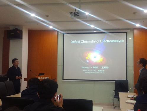 11月1日,华东理工大学张军教授、湖南大学王双印教授应邀到中国科学院兰州化学物理研究所苏州研究院访问交流,并分别作了题为“炔烃活化中的反应中间体:金属卡宾、乙烯基金属及非正常卡宾金属配合物”和“电催化剂缺陷化学”的学术报告。