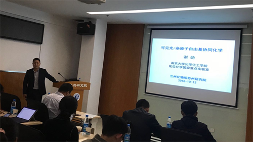 10月12日,应羰基合成与选择氧化国家重点实验室邀请,南京大学化学化工学院谢劲副教授到中国科学院兰州化学物理研究所苏州研究院访问,并作了题为“可见光/杂原子自由基协同化学”的学术报告。
