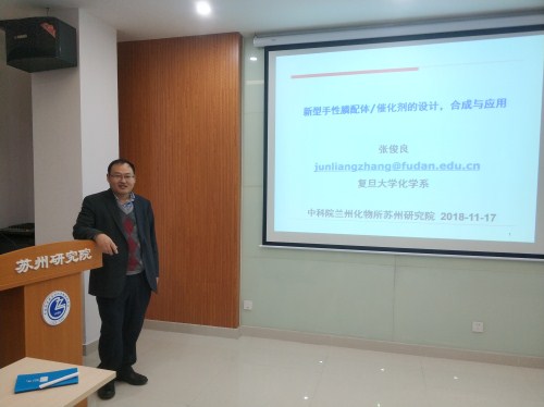 11月17日,复旦大学化学系张俊良教授应邀到中国科学院兰州化学物理研究所苏州研究院交流访问,并作了题为“手性膦配体、催化剂的设计及应用”的学术报告。