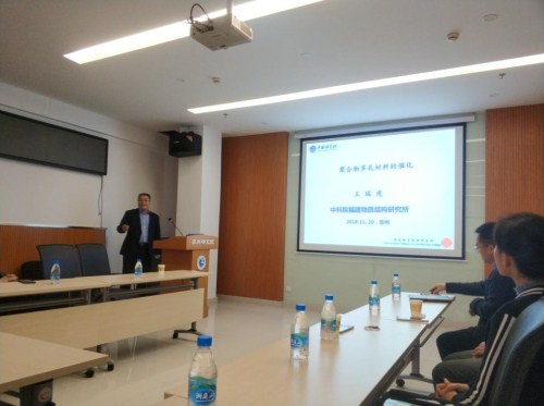 报告中,王瑞虎研究员介绍了一系列新型聚合物多孔材料、共价有机框架材料的构建及其在催化反应中的应用。郝青丽教授报告了氧化石墨烯的制备方法、性能优势、绿色合成工艺,以及氧化石墨烯在新型电极材料、界面反应过程和高效电化学器件中的应用。李焕荣教授介绍了沸石孔道酸性对发光性能的影响规律、稀土配合物杂化发光材料的环境友好制备策略和自修复发光水凝胶的超分子构筑。