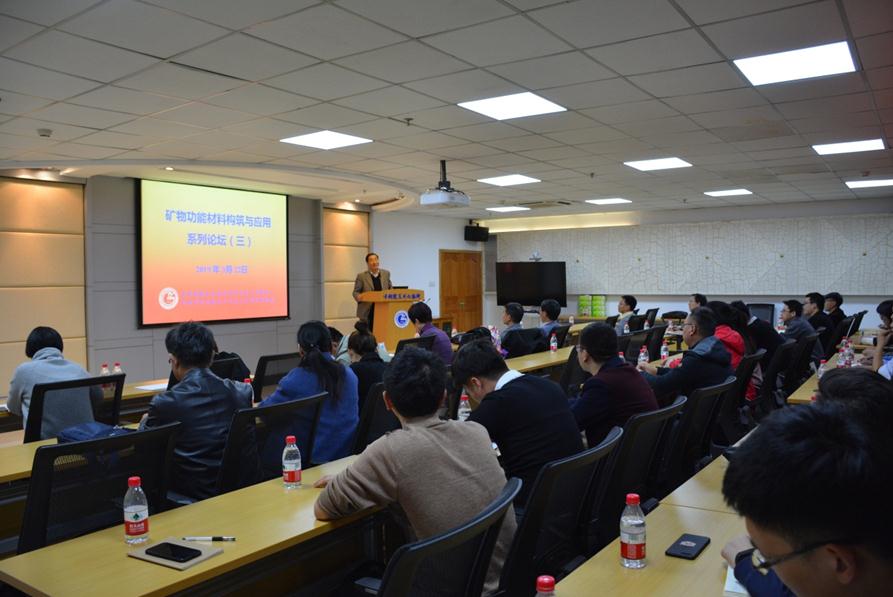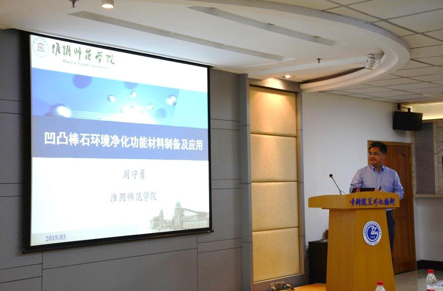 3月22日,中国科学院兰州化学物理研究所甘肃省黏土矿物应用研究重点实验室举办了“矿物功能材料构筑与应用系列论坛(三)”,邀请了合肥工业大学陈天虎教授、华南理工大学吴平霄教授、中国地质大学(北京)张泽朋教授和淮阴师范学院周守勇教授,分别作了题为“铁氧化物矿物:反应性和环境效应” “功能化粘土矿物与环境修复” “对蒙脱石的认识与实践”和“凹凸棒石环境净化功能材料制备与应用”的学术报告。