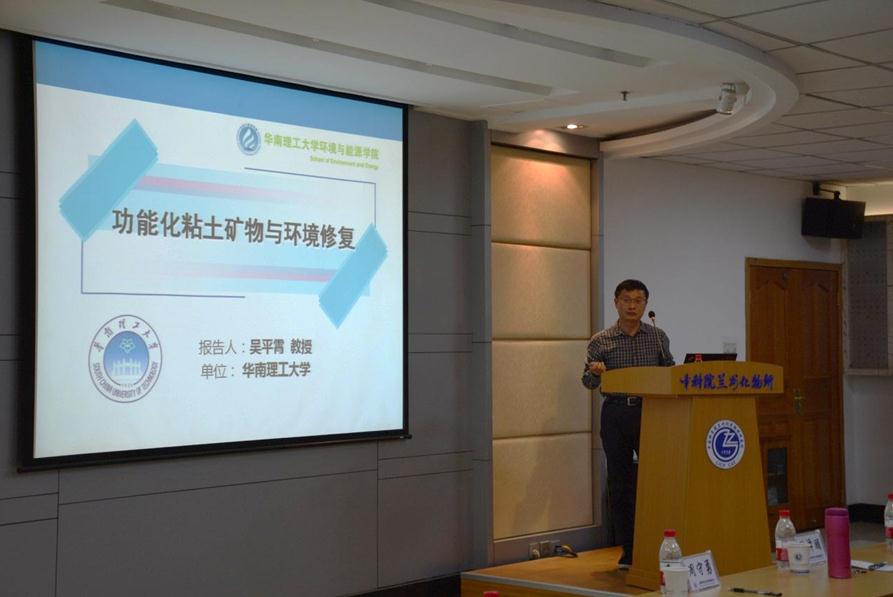 吴平霄教授介绍了其研究团队在黏土矿物/零价铁、表面活性剂插层黏土矿物、LDO/C60、石墨烯/LDH等复合材料的构筑及其在催化氧化降解抗生素、双酚A等有机污染物,以及功能改性黏土矿物原位转化和吸附有毒重金属铊、砷、镉的研究成果及其在珠三角水体抗生素、重金属污染修复中的应用。此外,吴教授还从矿物学和生命科学结合的角度,系统介绍了黏土矿物材料与生命物质,如DNA、氨基酸、细菌等的相互作用,阐释了相关机理。