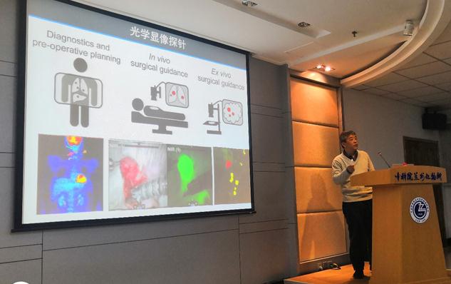 报告中,蒋锡群教授首先介绍了基于分子影像技术的肿瘤检测和治疗在当前材料科学和生物医学等研究领域的重要作用、意义以及所面临的问题和挑战,然后分两部分详细介绍了其团队在用于肿瘤早期检测的光学探针及小尺寸纳米给药系统方面所取得的研究进展。基于铱配合物和生物相容性高分子材料,其团队合成了新的大分子光学探针和纳米探针,结果显示其在肿瘤的早期检测及追踪肿瘤的转移等方面性能优异,最佳信噪比可达100以上。同时,他们在小尺寸高分子纳米给药系统及其在肿瘤的靶向给药和药物渗透等方面的研究也取得了良好效果。报告会后,蒋教授参观了固体润滑国家重点实验室,并与相关课题组和人员进行了交流与讨论。