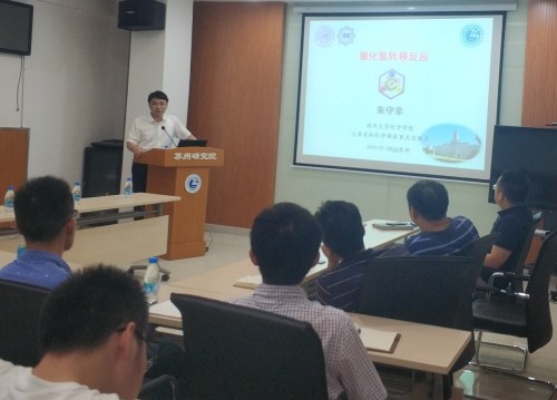 7月8日,南开大学化学学院副院长朱守非教授应邀到中国科学院兰州化学物理研究所苏州研究院访问交流,并作了题为“催化氢转移”的学术报告。