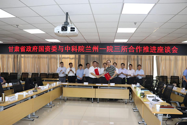 在省国资委、兰州分院一院三所及各省属企业的共同见证下,兰州化物所与公交建集团下属公司甘肃路桥建设集团签订了科技创新合作基金项目。
