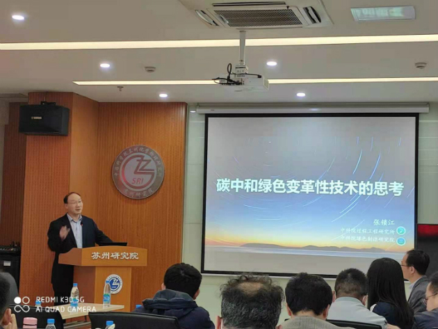 4月25日,中国科学院院士、中科院过程工程研究所张锁江研究员应邀访问中国科学院兰州化学物理研究所苏州研究院,并作了题为“碳中和绿色变革性技术的思考”的学术报告。