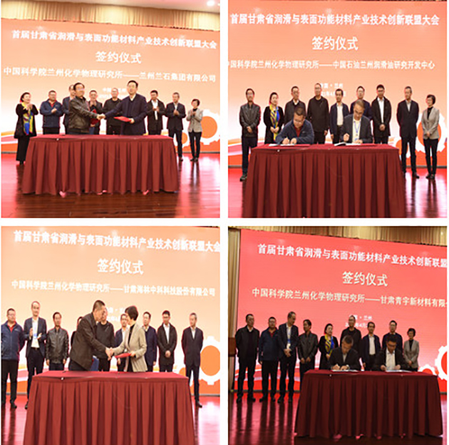 签约仪式上,兰州化物所分别与兰州兰石集团有限公司、中石油兰州润滑油研究开发中心、甘肃青宇新材料有限公司、甘肃海林中科科技股份有限公司等四家联盟单位签订战略合作协议。